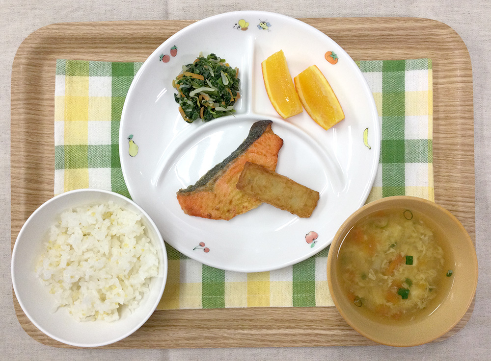 2026年2月20日 by kodomoen-otsuka 食育/お誕生会メニュー 2月のお誕生会メニュー 2月20日金曜日に2月のお誕生会が開催されました。 今月の特別メニューは… きびごはん 米・もちきび 鮭のカレームニエル 鮭・小麦粉・塩こしょう・カレー粉・バター・白ワイン ハッシュドポテト じゃがいも・塩・片栗粉・こめサラダ油・青のり 三色ナムル ほうれん草・もやし・人参・塩・鶏がらスープ・ごま油 たまごスープ 卵・豆腐・人参・玉ねぎ・しめじ・小ねぎ・しょうゆ・塩・煮干し・昆布 果物 オレンジ